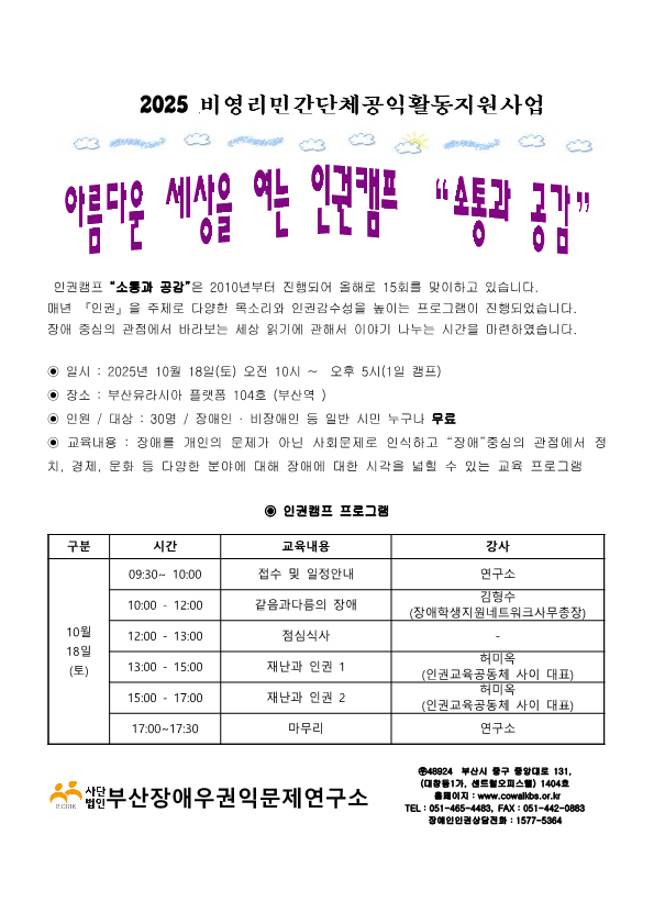 2025년 아름다운세상을 여는 인권캠프 “소통과 공감”